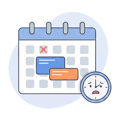 佢哋嘅難題: 老師每星期要花超過 8 小時處理改期、對數、出通知,行政效率極低。 人手報名轉換率低,流失報名。